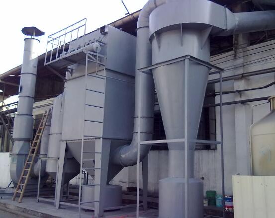 清灰过程是先切断该室的净气出口风道,使该室的布袋处于无气流通过的状态(分室停风清灰)。然后开启脉冲阀用压缩空气进行脉冲喷吹清灰,切断阀关闭时间足以保证在喷吹后从滤袋上剥离的粉尘沉降至灰斗,避免了粉尘在脱离滤袋表面后又随气流附集到相邻滤袋表面的现象,使滤袋清灰彻底,并由可编程序控制仪对排气阀、脉冲阀及卸灰阀等进行全自动控制。含尘气体由进风口进入,经过灰斗时,气体中部分大颗粒粉尘受惯性力和重力作用被分离出来,直接落入灰斗底部。含尘气体通过灰斗后进入中箱体的滤袋过滤区,气体穿过滤袋,粉尘被阻留在滤袋外表面,净化后的气体经滤袋口进入上箱体后,再由出风口排出。