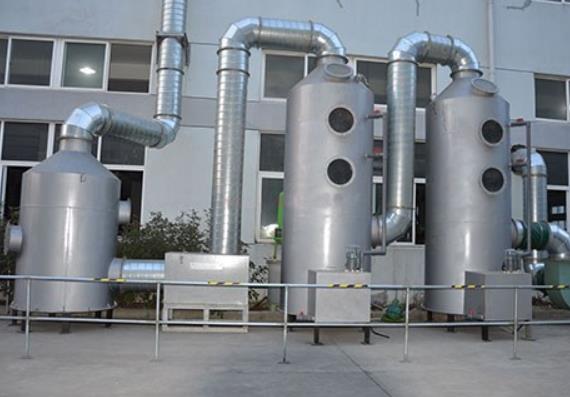 吸收液在塔底经水泵增压后在塔顶喷淋而下,然后回流至塔底循环使用。利用废气中有水溶性的有害物质直接与水接触,达到溶解于水的目的。